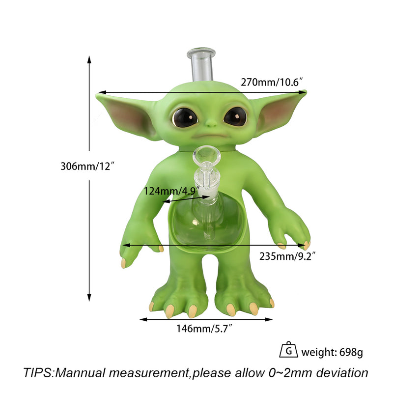 Learn the ways of the force with our 12" Yoda glass water pipe. Made from high-quality glass, this bong is perfect for smooth hits and easy cleaning. The intricate design of Yoda adds a touch of style to your smoking experience. May the hits be with you.